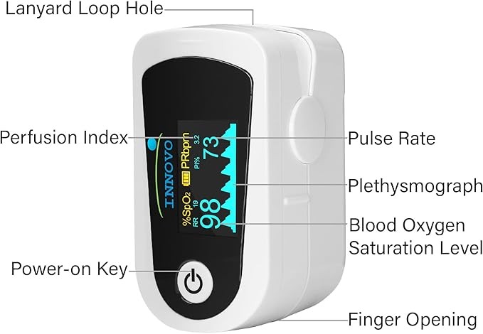Accurate and reliable-Innovo iP900BP-B finger pulse oximeter is an advanced model with improved LED and sensor, which can measure SpO2 and pulse rate even under the condition of low blood perfusion.