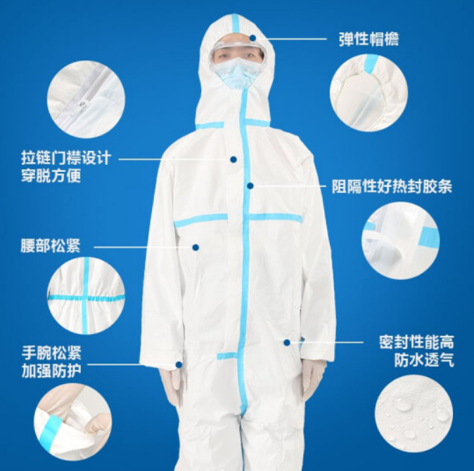 New small protective disposable protective clothing medical epidemic prevention suit hooded isolation clothing with blue stripe one-piece full-body protective clothing average size