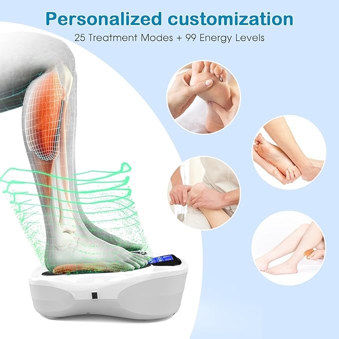 [Personalized customization] No noise! No vibration! There is no limit to the size of the foot! There are 25 treatment modes (acupuncture, massage, scratching, kneading, patting and finger pressing) in the foot circulation equipment of EMS foot massager, which can deeply and directly contact the source of tension or pain, plus 0-99 electromagnetic wave intensity to meet your needs, and in turn achieve ideal results. Can be used remotely.