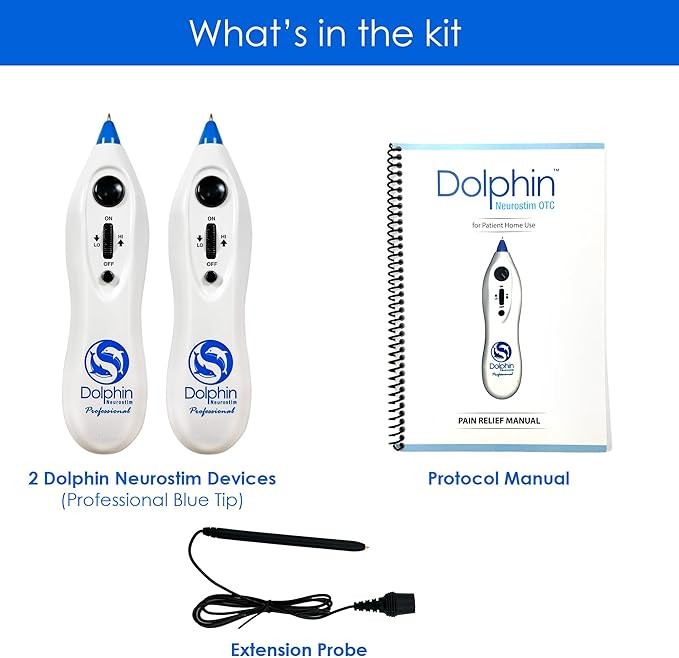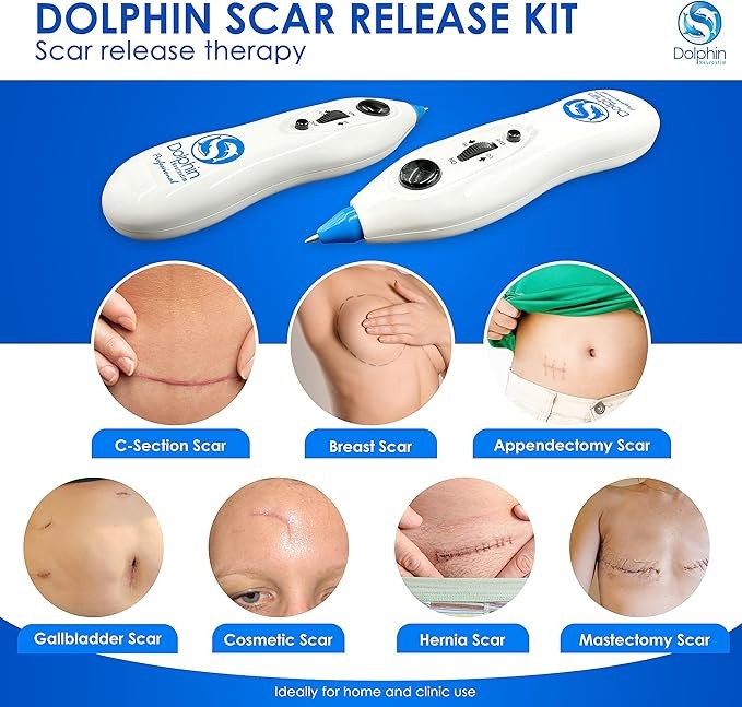Dolphin Neurostim OTC is a hand-held micro-current nerve stimulation device, which is specially designed to temporarily relieve muscle pain. Applying two Dolphin Neurostim OTC devices to surgical scar is another effective method to temporarily relieve chronic soft tissue pain. It is reported that scars can cause chronic pain in science, which leads to various health problems, including chronic pain. Dolphin OTC adopts a patented solution, which is based on the scientific concept of increasing skin intercellular metabolism, protein synthesis and healing function, so as to awaken the skin's self-generation ability. Through the direct cellular stimulation of micro-current wave by scar, this simple and discomfort-free procedure has been proved to relieve 73.2% pain after one use. (IJCAM 2018) Dolphin Nerve Stimulation OTC Scar Removing Kit includes two (2) portable dolphin Neurostim OTC devices, an easy-to-follow protocol manual, a scar release manual, a remote treatment extension probe and a charming portable box. Dolphin 30-day guarantee: We are very confident that you will find that dolphin nervousness can relieve pain, and we have an unconditional 30-day money-back guarantee. If you are not completely satisfied, please return the whole system and we will refund the purchase price unconditionally.