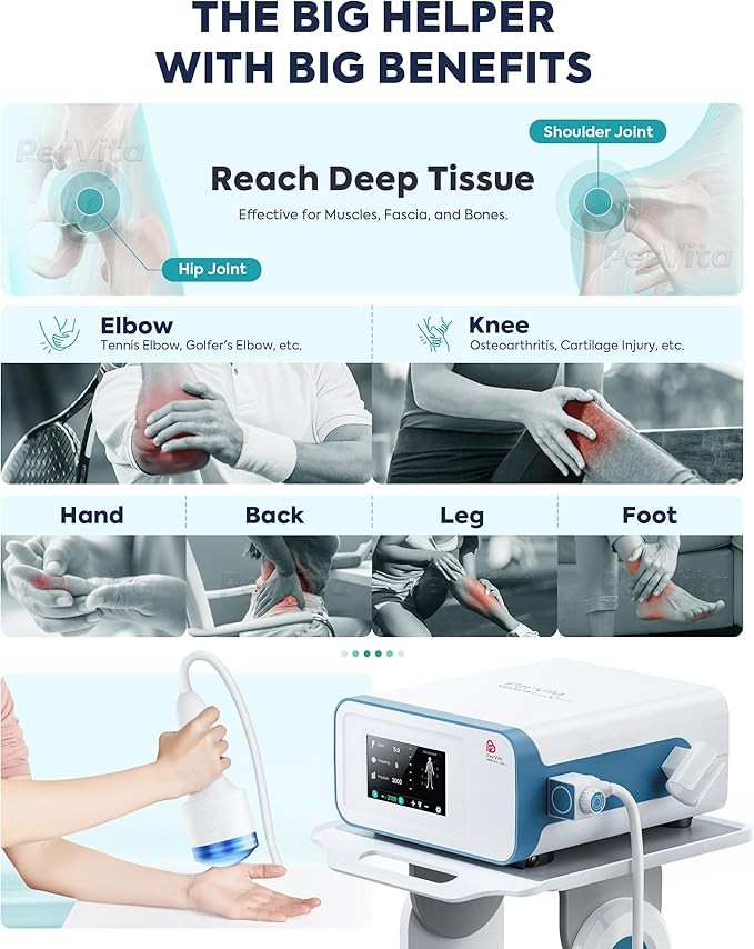 Rapid recovery: non-invasive and safe method, pressure wave treatment of various musculoskeletal diseases. Self-repair and body repair through high-energy sound waves improve blood flow. No postoperative healing time is needed.